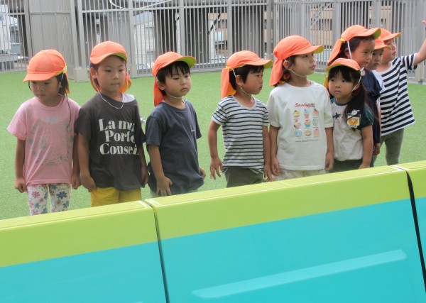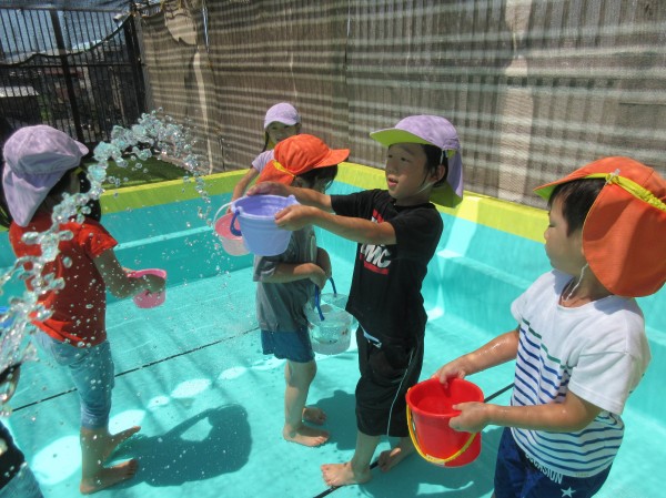 夏らしい厳しい暑さが感じられる今日この頃。3,4,5歳児幼児組のプール開きを行いました。