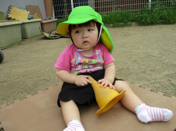 今日は戸外遊びをしたつぼみぐみ(0歳児クラス)さん☆園庭やお部屋の前のテラスでそれぞれ好きな遊びを楽しみました(^^♪