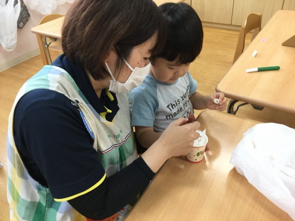 今年もコロナウイルス感染症拡大防止の為、園内でこども達とのみで行った夏祭りでしたが、賑やかな雰囲気やお祭り風の遊びをこども達に楽しんでもらえるよう計画してきました。楽しい夏の思い出になっていたらいいなと思います。