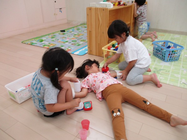 今すみれ組で人気のごっこ遊び、お医者さんごっこをしていました。