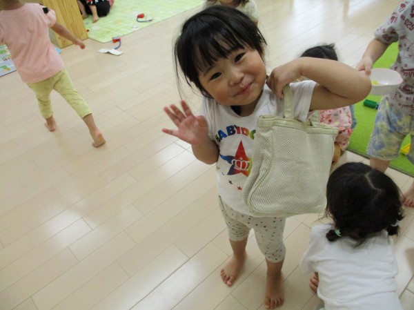 今日も暑さに負けず元気なすみれ組の子ども達。