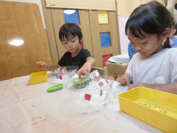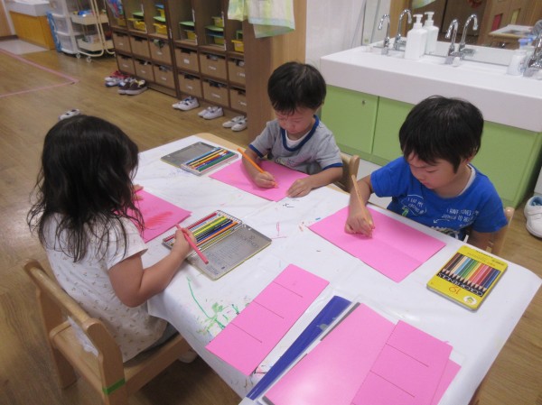 日増しにお祭り気分が湧いてきて制作にも力が入り、真剣な表情の子どもたちでした。