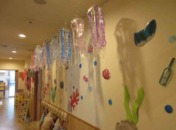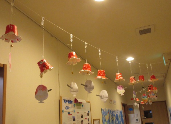 スズランテープが風に揺られ、廊下が涼しげになりました。