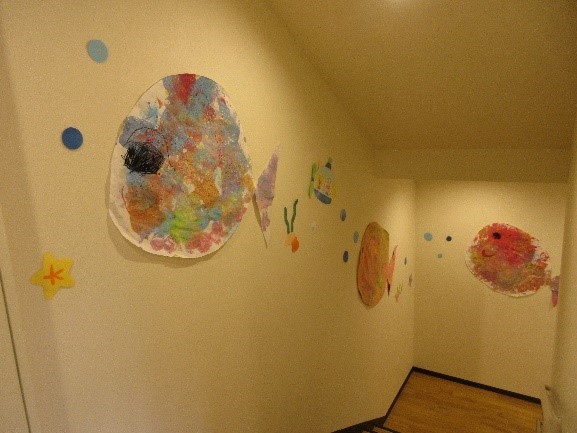 階段には大きな魚がのびのびと泳いでいる空間を作りました。
