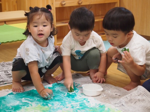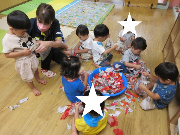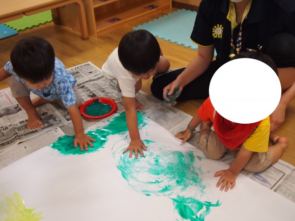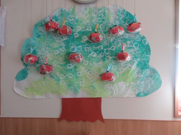みんなでペタペタと大きなりんごの木????を制作して遊びました‼