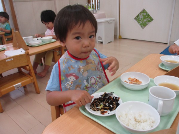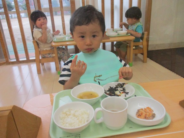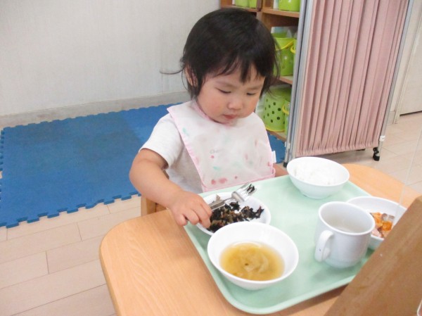こどもの家・志木中宗岡 今日の給食の様子(^^♪ たんぽぽ組(1歳児クラス)