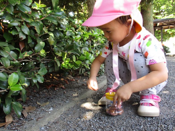 夢中になってドングリを集めます。どこにあるかな?ここかな??まるで宝さがしみたいですね(^^♪