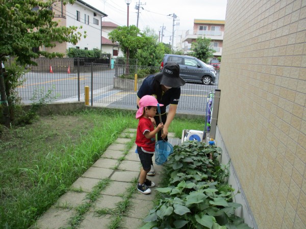 こんなに大きなコオロギを発見!!虫かごに入れてみんなで観察しました。