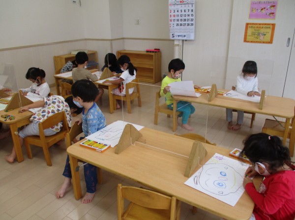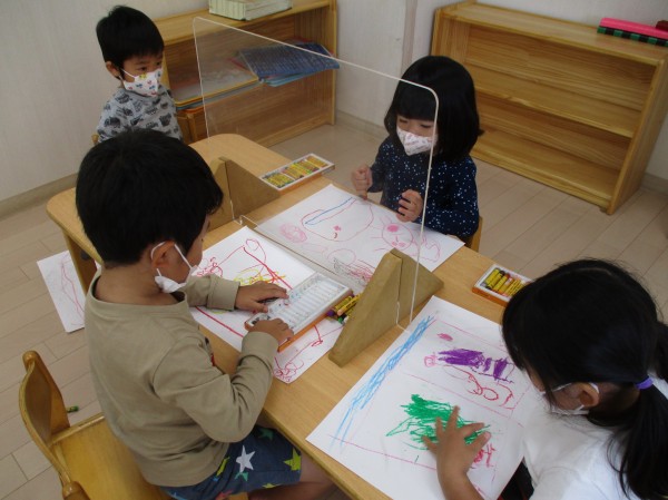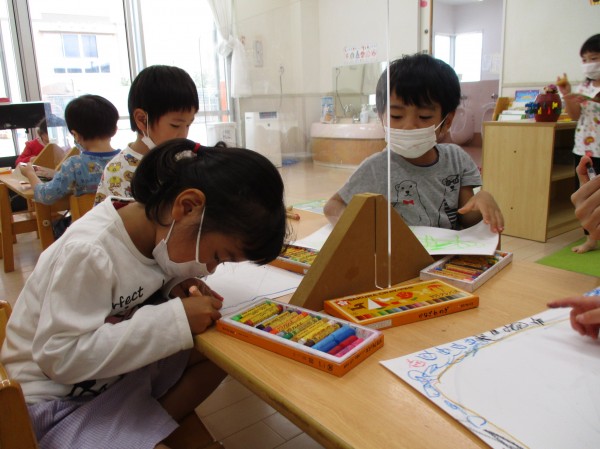 こどもの家・志木中宗岡 さくら組(3歳クラス)運動会の絵を描きました♪