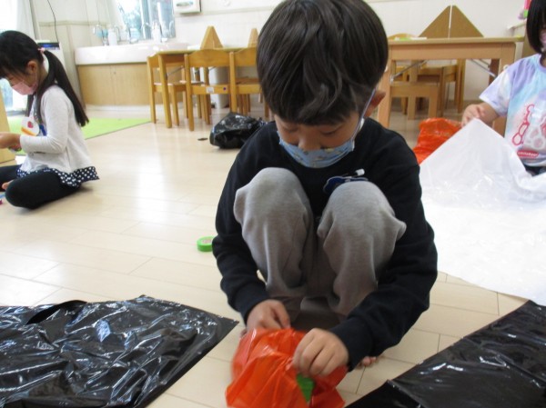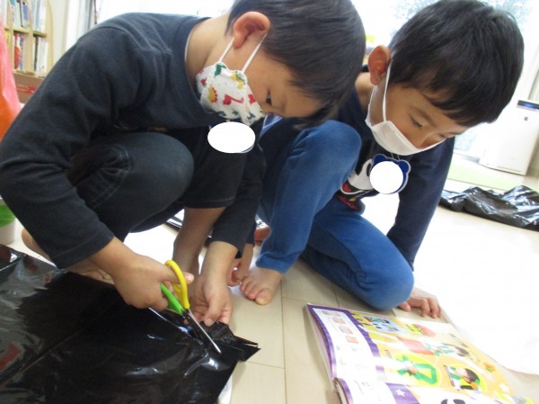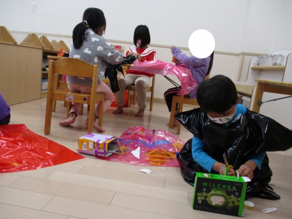 こどもの家・志木中宗岡 ハロウィンの衣装作り★5歳児(ゆり組)