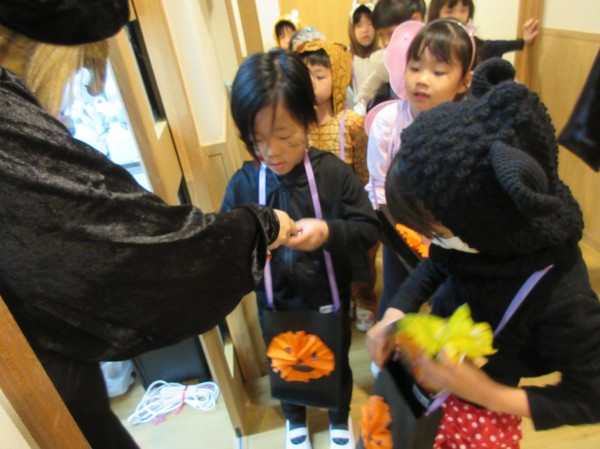 3,4歳児は園内を回ってお菓子を貰いました。回る前から楽しみにする子ども達。