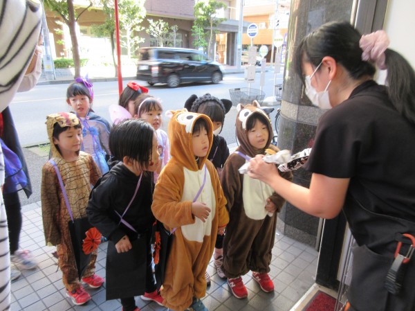 5歳児ぞう組は、コロナの制限が少しずつ緩和されている為、新しい取り組みとして近隣の店舗にご協力頂き園周辺を回りました!