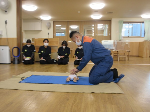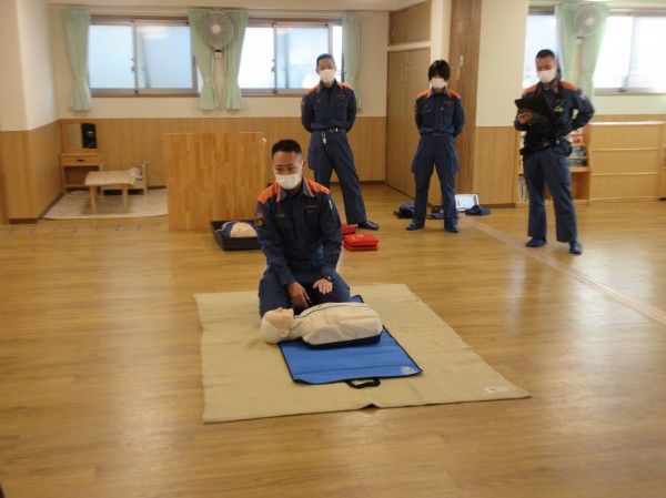 今回は船橋市中央消防署 本郷分署より消防隊員の方にお越し頂き、救命・消防訓練を実施した際の様子をお伝え致します。