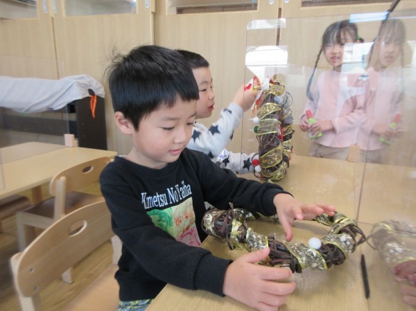 今回は、5歳児ぞう組のリース作りの様子をお伝え致します。