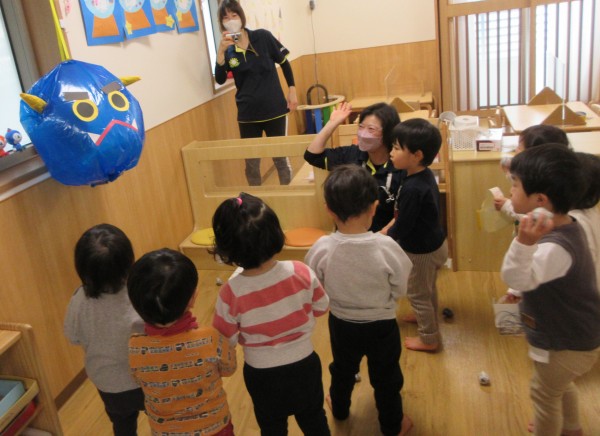 こんにちは‼たんぽぽ海神町南保育園です。いつも保育園ブログをご覧いただきありがとうございます。今回は節分の会(豆まき)の子どもたちの様子を掲載いたします。