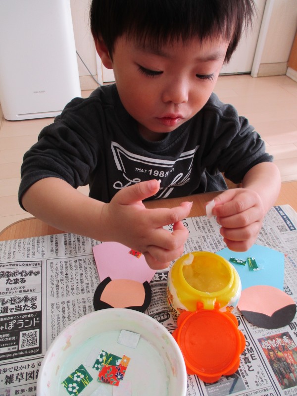 こどもの家・志木中宗岡 すみれ組(2歳児クラス)お雛様製作中☆