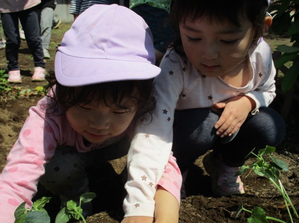 こどもの家保育園・志木中宗岡 野菜の苗植えといちご食べたよ♡ いるか組(4歳児)
