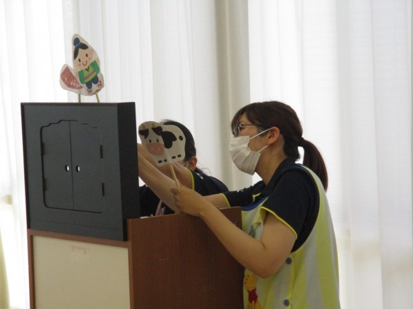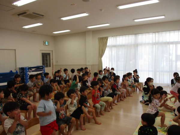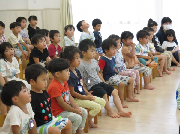わくわくしながらホールに集まる子ども達。お話を聞く準備は万端です(*'ω'*)