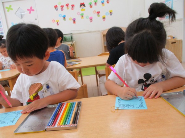 今週の金曜日は待ちに待ったくじらまつり!!ぺんぎん組(3歳児クラス)では、くじら祭りで使うチケットの色塗りをしました(*^-^*)