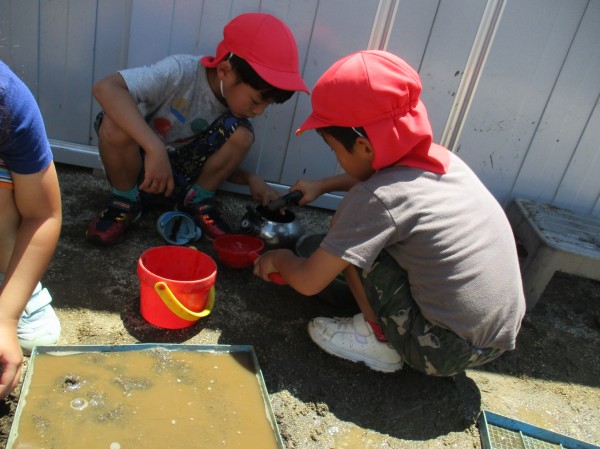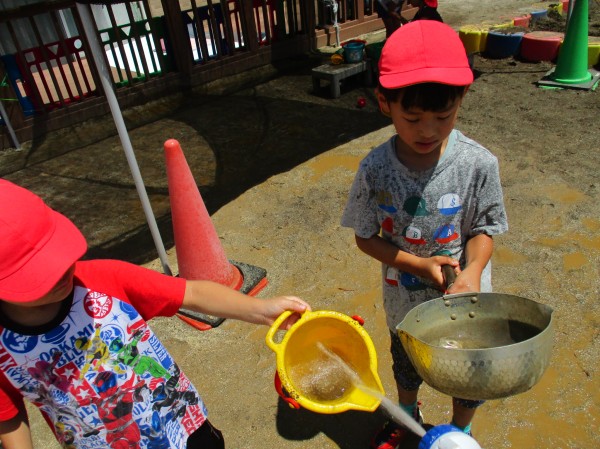 こどもの家・志木中宗岡 水遊びって楽しいね♪(5歳児 くじら組)