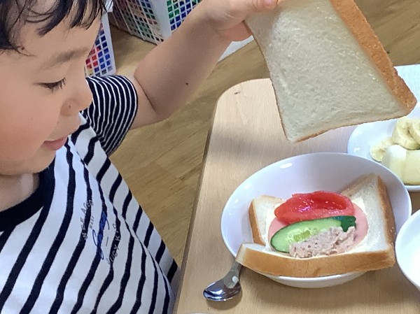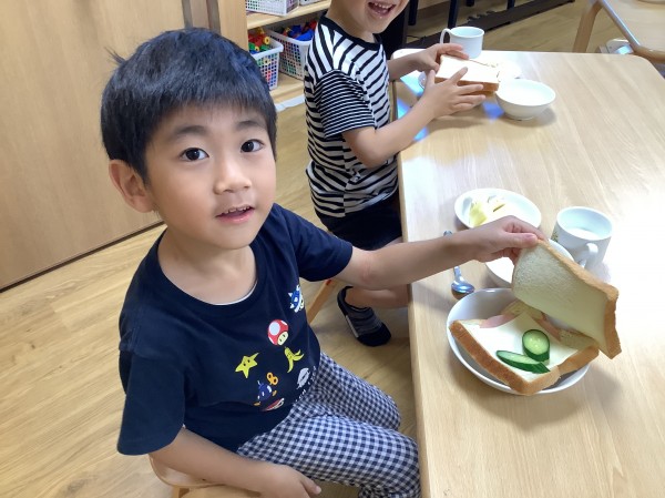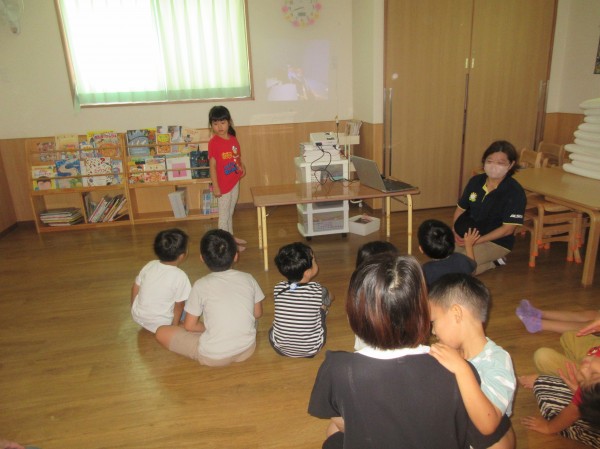 はじめてのお泊り保育で子ども達はたくさんの初めて体験をしたのではないでしょうか?!朝のお集まりはお迎えに来たお父さん、お母さんと一緒にお泊り保育の写真を見たり、感想を発表したりしました‼