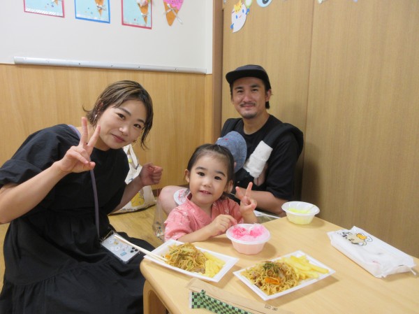 焼きそば、フライドポテト、かき氷を嬉しそうに頬張っていました。