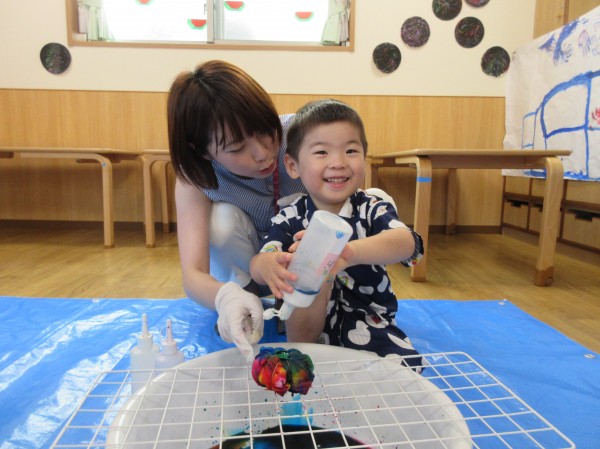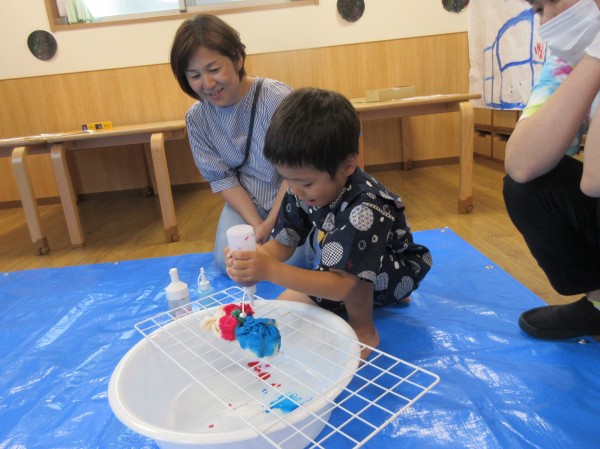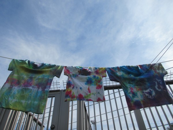 タイダイ染めでは、思い思いに縛ったり、色付けしたりと唯一無二の作品作りを楽しみました‼