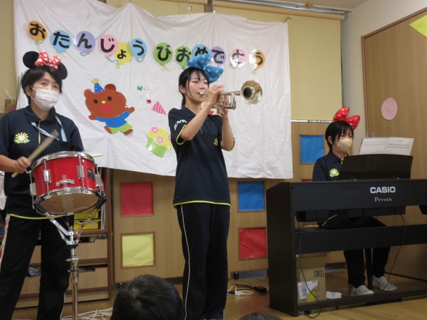 こんにちは‼たんぽぽ海神町南保育園です。いつも保育園ブログをご覧いただきありがとうございます。今回は7月のお誕生会での素敵な演奏のプレゼントの様子を掲載いたします。