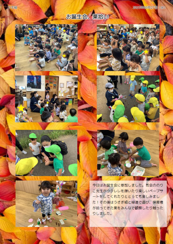 9月27日(水)りす組の保育ドキュメンテーションをご紹介いたします。