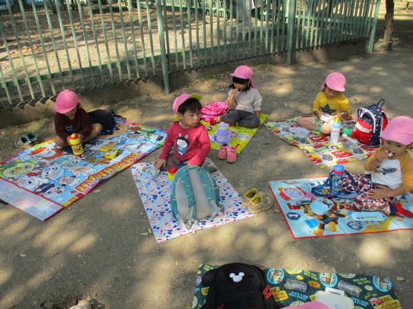 保育園の近くにあるかすみ公園までお弁当を持って出発!!