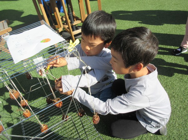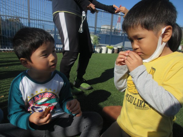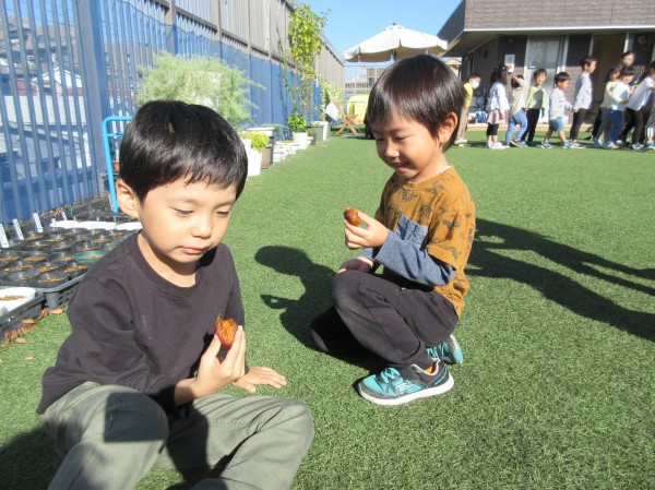 「この種を植えたら、柿が出来るかな?」と言い出す子ども達…。即席ではありますが、柿の種を植えてみました。来年?それとも3年後?が楽しみです。