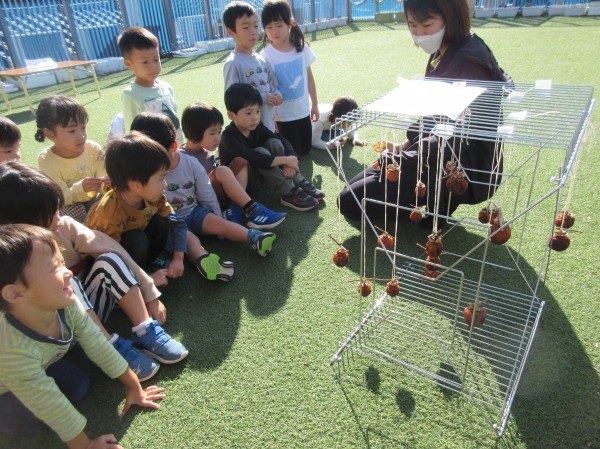 こんにちは‼たんぽぽ海神町南保育園です。いつも保育園ブログをご覧いただき、ありがとうございます。今回は、またまた秋の味覚「柿」の食育、制作遊び、地域交流の様子を掲載いたします。