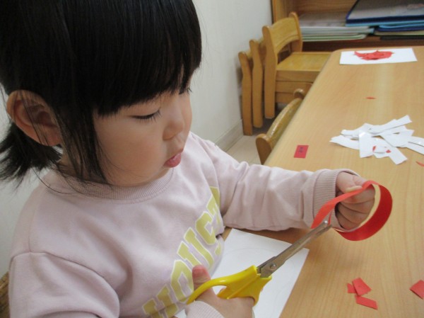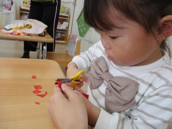 こどもの家・志木中宗岡 らっこ組(2歳児クラス) 初めてハサミに挑戦!