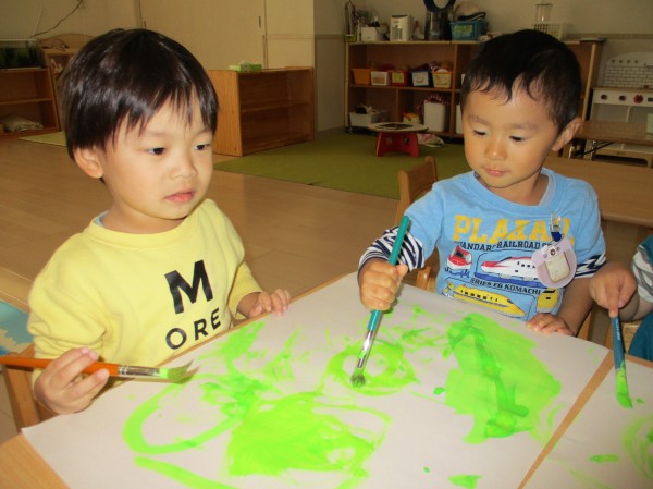 ハサミに挑戦したり、絵の具遊びを楽しんだりしながら、秋の製作を楽しんだ子どもたちでした!