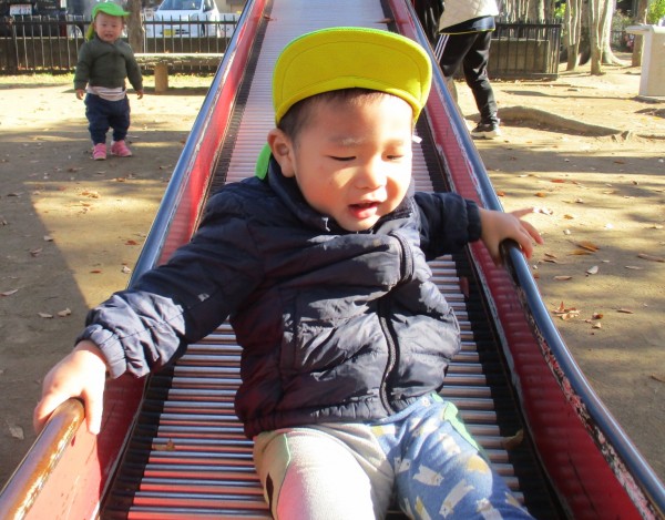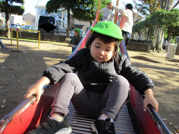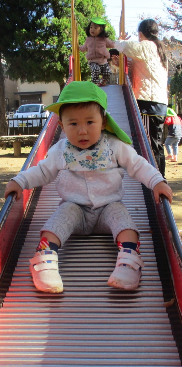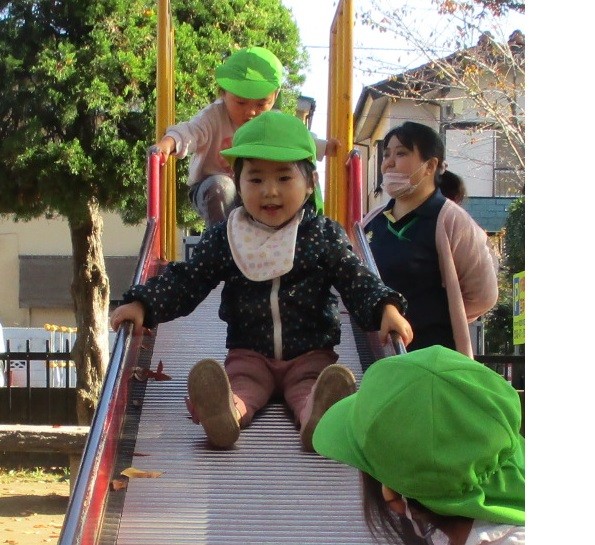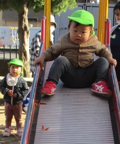 すべり台は、最初は怖っていましたが慣れてくると繰り返し滑り楽しんでいました。園外活動で様々な経験を積んで楽しんでいきたいと思います。