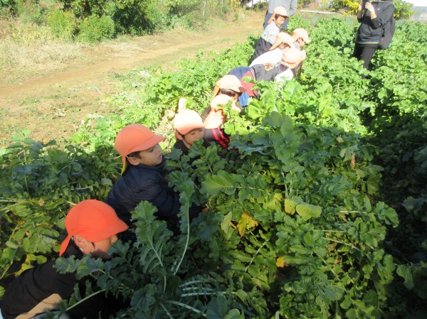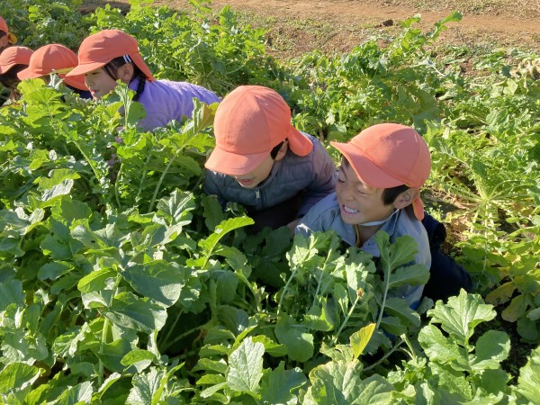 帰りは重たい大根をレジ袋に入れ、一生懸命に持ち帰りました‼時々「重い~」「代わりに持ってあげるよ」と助け合う様子もありました‼