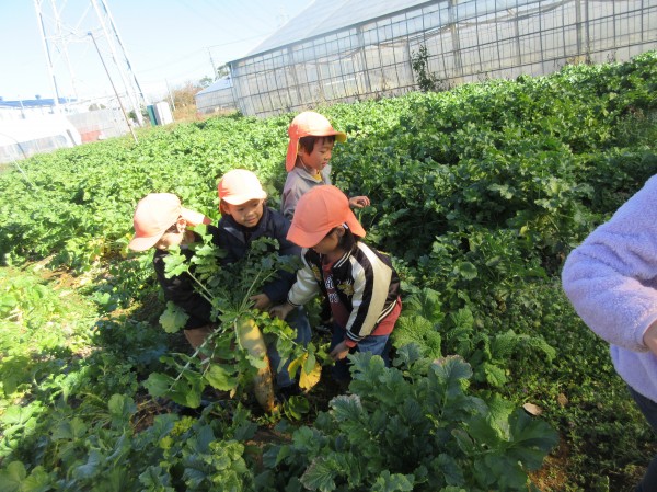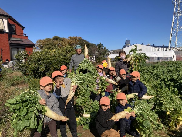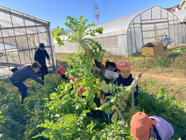 こんにちは‼たんぽぽ海神町南保育園です。いつも保育園ブログをご覧いただき、ありがとうございます。今回は5歳児の大根収穫体験の様子を掲載いたします。
