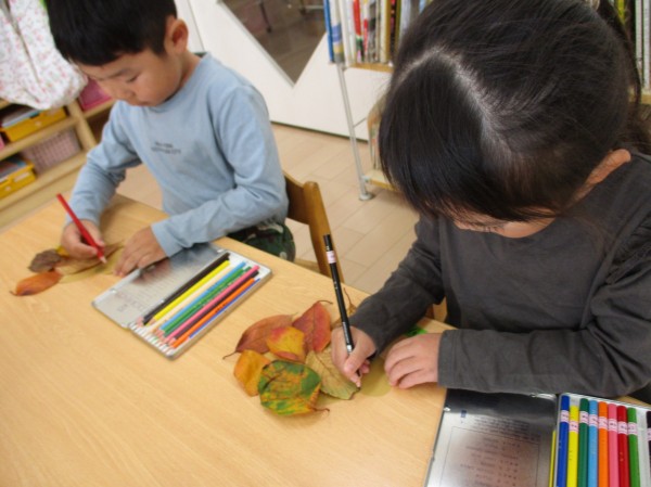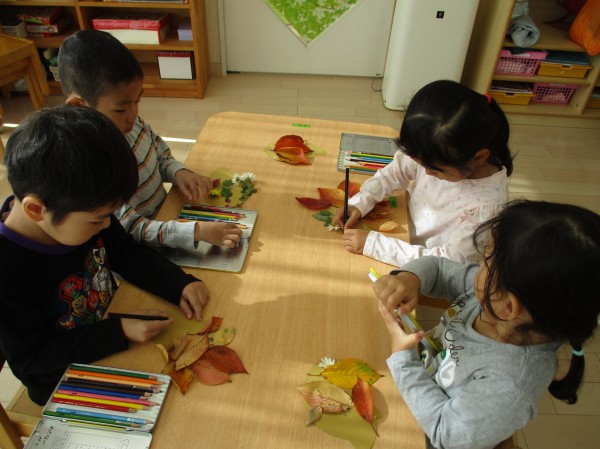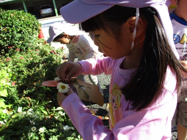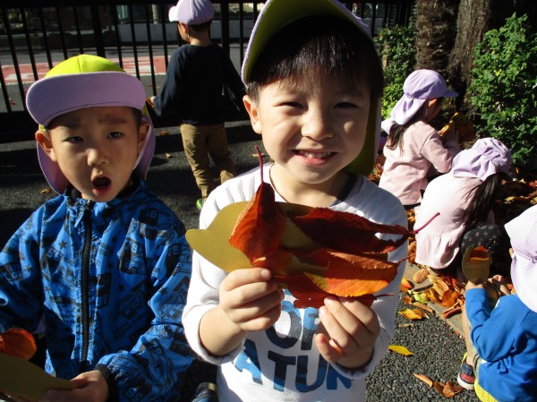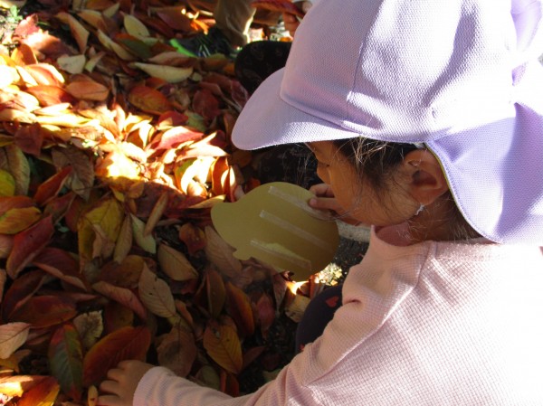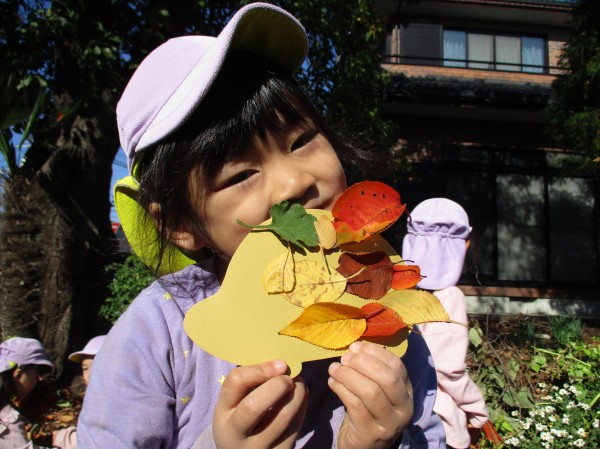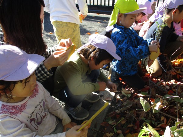 黙々と葉っぱや落ち葉をつけていく子ども達。