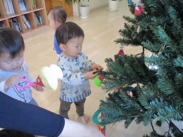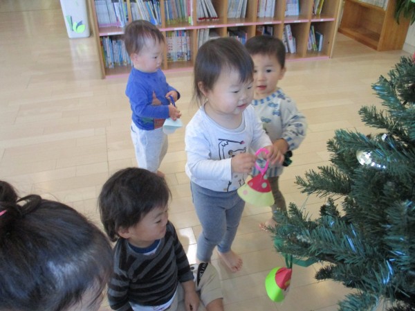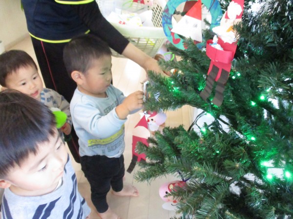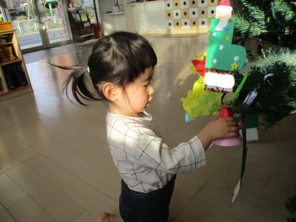 完成した後は大きなツリーに飾りました。早くプレゼントが届かないかなぁ~と待ちわびている子どもたちです!!