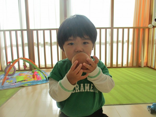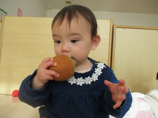 今たまご組さんが好きなおもちゃは、布の食べ物のおもちゃ♪果物や野菜がたくさんあり、それぞれ好きな食べ物を手に取っています(*'▽')