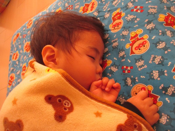 基本は仰向けで眠り、寝返りを打ったら仰向けに向きを変えて眠っています。