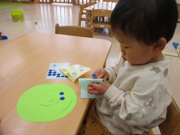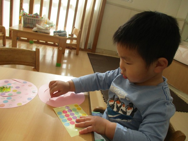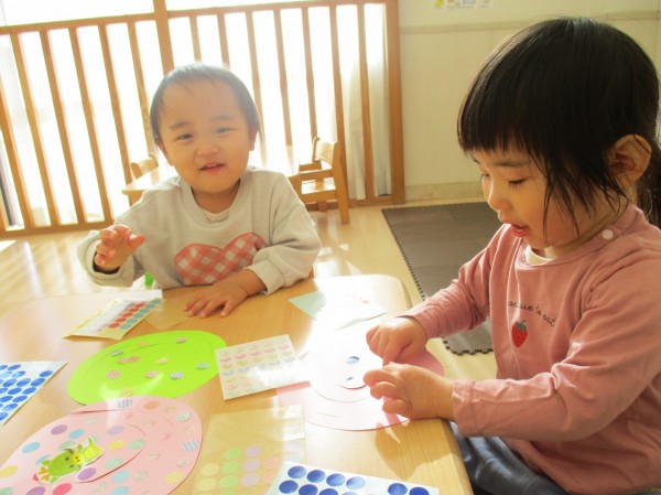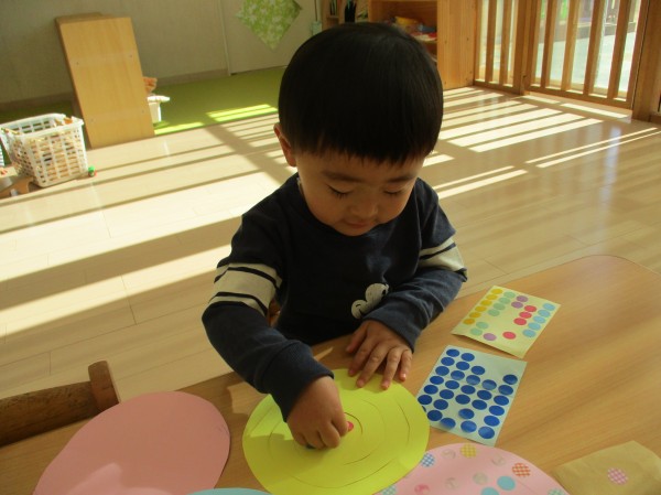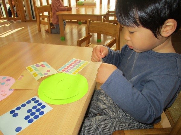 シール貼り、集中して取り組んでいました。みんな真剣です。