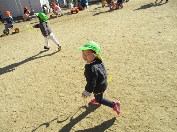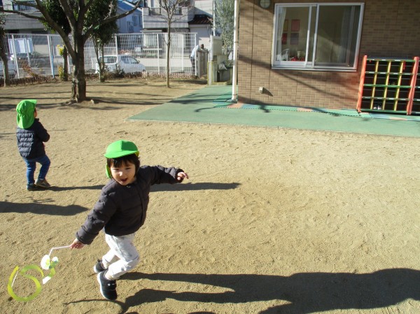 こどもの家・志木中宗岡 お正月遊び 凧揚げ あひる組(1歳児クラス)