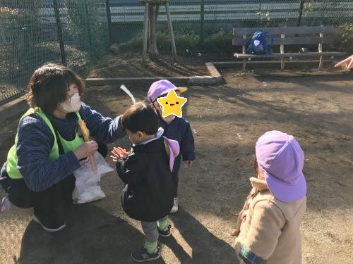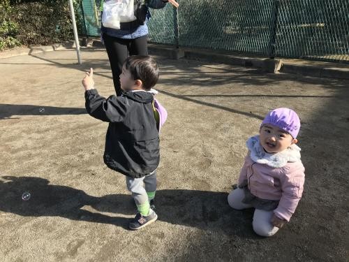 たくさん歩いて疲れたのか、ゆったりしたシャボン玉遊びに夢中な子どもたちでした☺︎