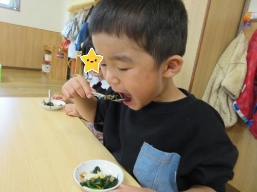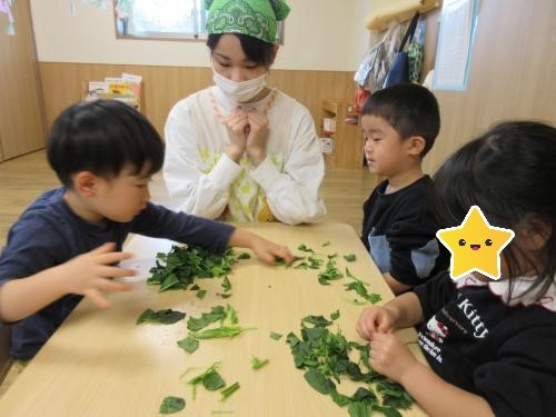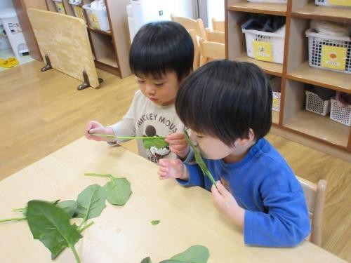 たんぽぽ海神町南保育園 『食育(ほうれん草)』