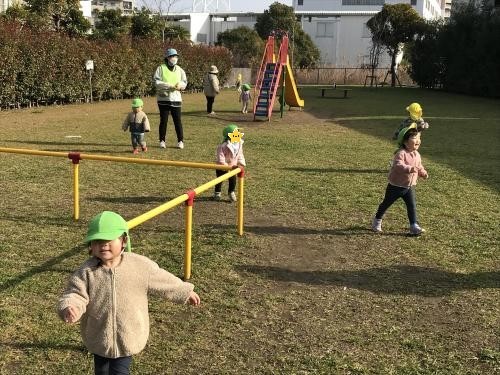 行き帰りも異年齢で手を繋いで歩く子もおり、りす組の子の手を最後まで引いて歩く頼もしいうさぎ組さんでした。