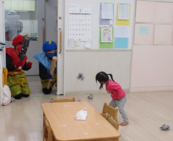 ドキドキしながらも豆まき頑張りました。 さすが!!あひる組です!!