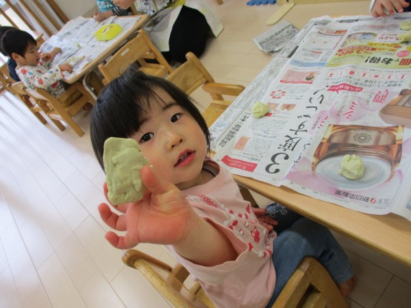 こどもの家・志木中宗岡 粘土で遊んだよ(*^^*) あひる組(1歳児クラス)