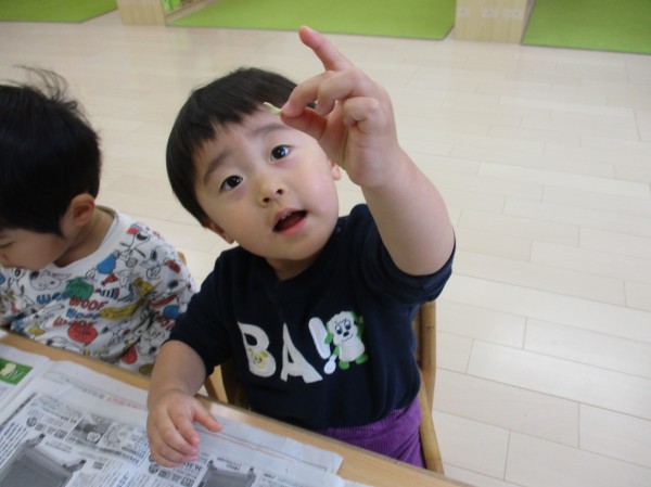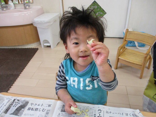 保育者が用意すると直ぐに興味を示して椅子に座った子ども達。早くやりたい!と前のめりでソワソワしていました。