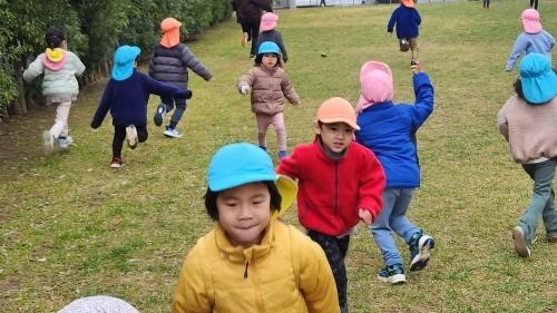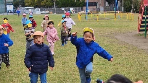 とても寒かったので、身体を温める為にかけっこをしました。長い距離を友だちと競争しながら腕を大きく振って走っていました。